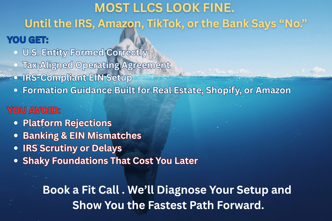 We provide continuous strategy support during your LLC filing, covering all key areas: Amazon account setup, TikTok Shop PBR, tax interviews, utility bill requirements, Shopify Payments operational presence, and banking strategy.
